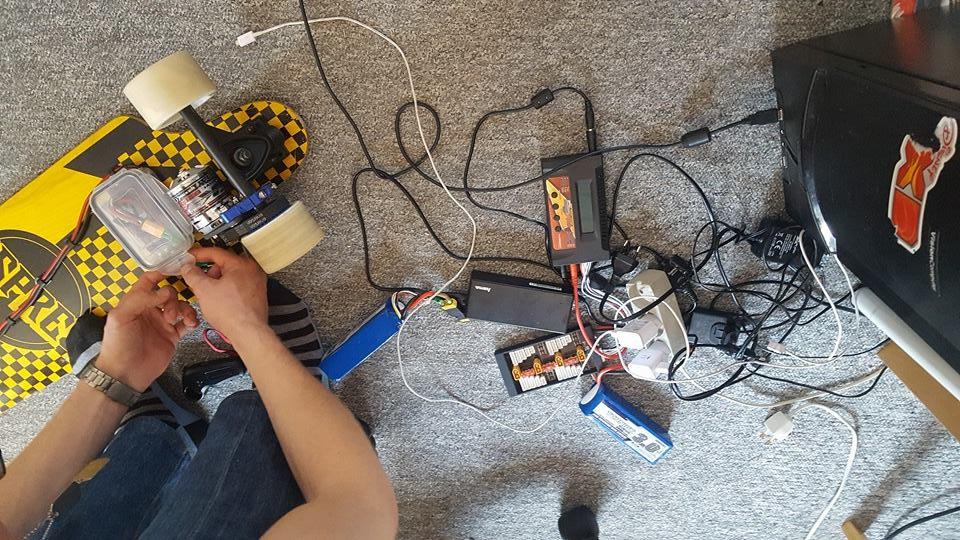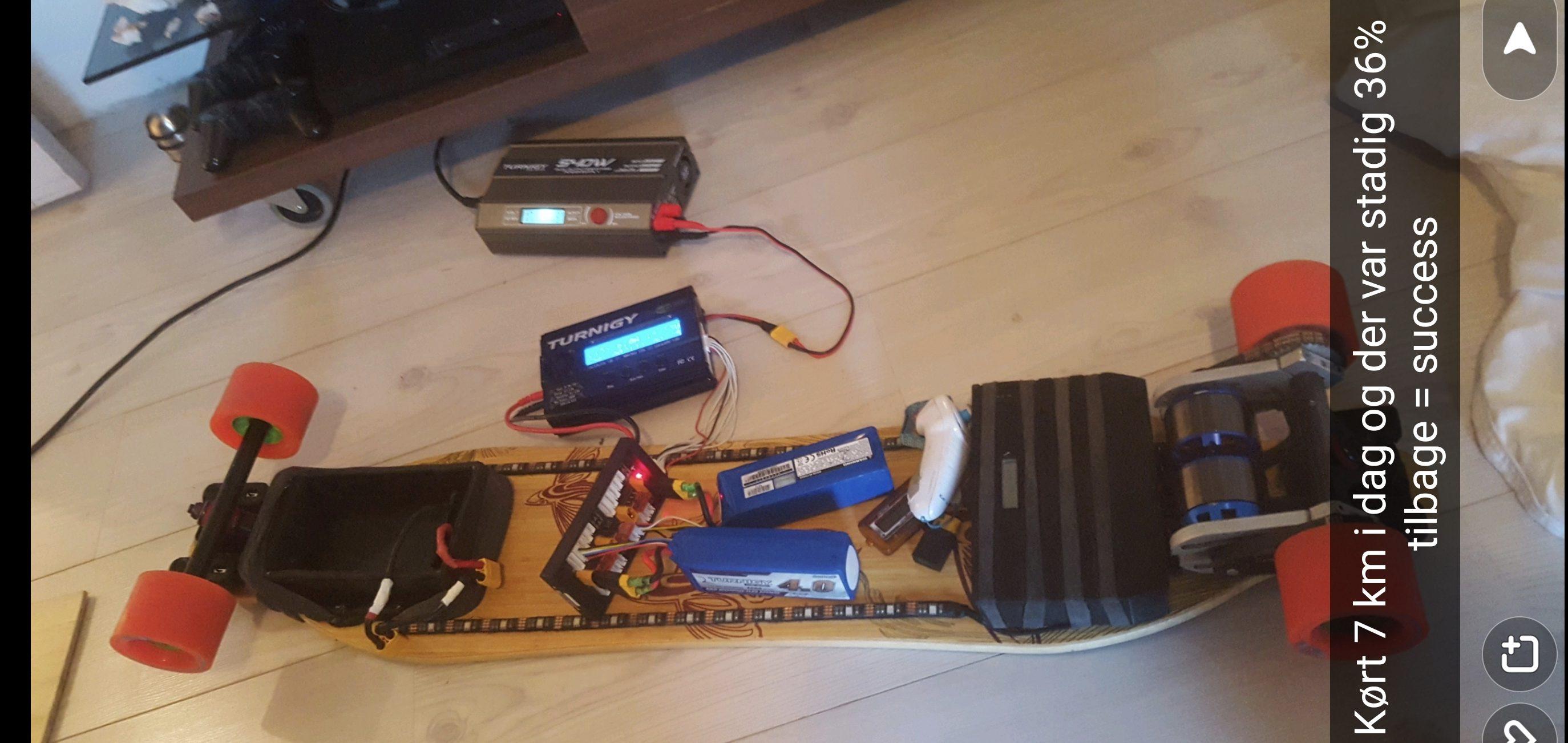 My second homemade e-board is Powered by dual 4.5kW motors, VESCs, and a custom 5S6P Li-Po (now upgraded to 18650 Li-ion). The controller was a a modified Wii Nunchuck but due to instability of the signal strength i changed it to a firefly remote it can hit 43 km/h in under 3 seconds with ~16 km range. The board still works today and is quite fun fun, flexible build that kickstarted my interest in electronics and CAD.