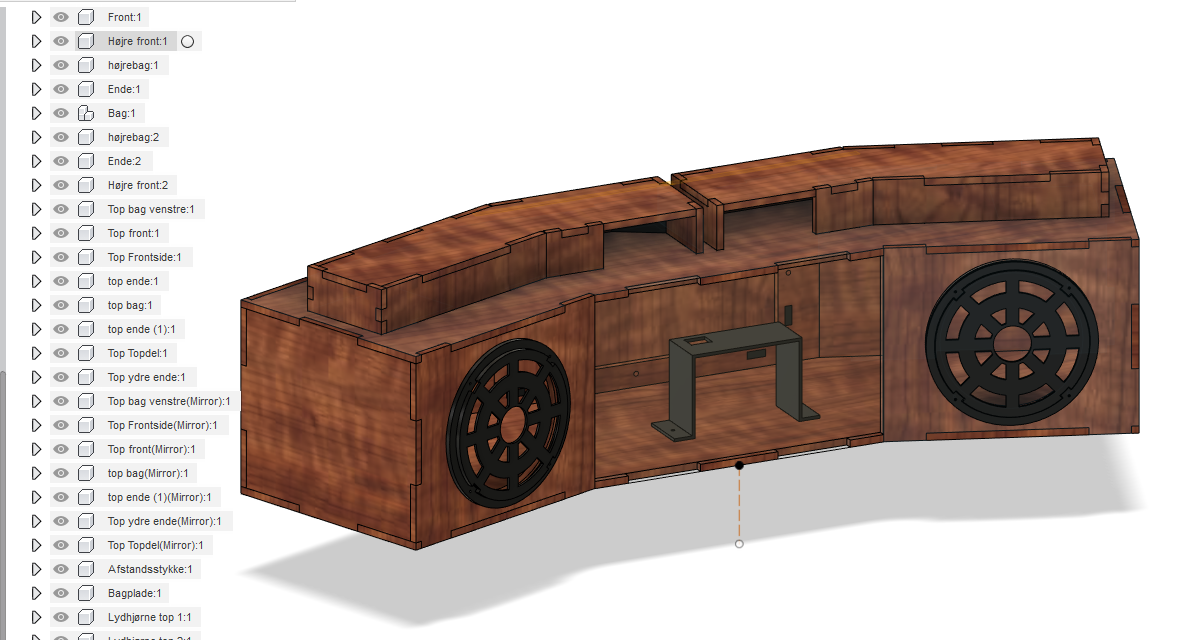 On the right side of the image, the full CAD model is shown with all major components represented. This includes vent placement, internal volume shaping, and structural supports—all modeled and iterated in Fusion 360 before any physical construction began.